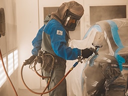 After the factory-certified technicians assess your vehicle for all major damage, fixes and adjustments with precision, we start prepping the vehicle. This includes moving to a clean room where technicians buff and prime pre-painted body areas. Then, we apply our top quality paint and clear coat to exactly match factory colors and textures.